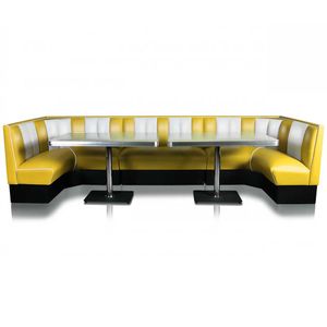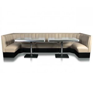 Her har vi kombinert 2 stk 120 cm/120 cm hjørnedinerbooth og 1 stk 120 cm dinerbooth.